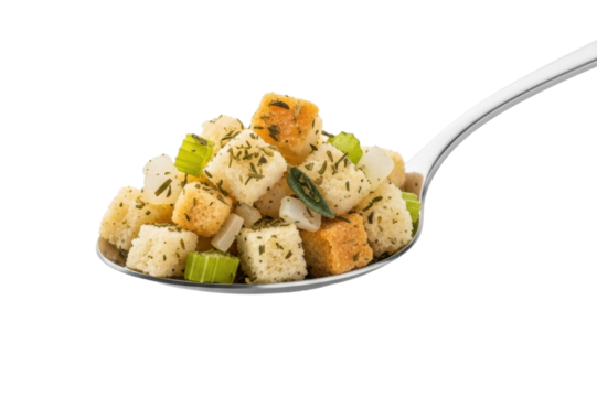 Fresh salad with croutons tomatoes and greens in a white bowl perfect for healthy eating and dieting on transparent background