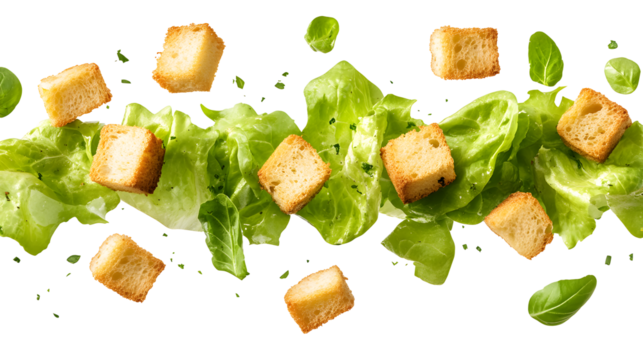 Fresh caesar salad with crispy croutons and parmesan cheese, Isolated On White Background, Png Transparent