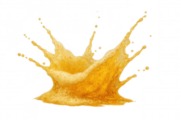 Refreshing orange juice splashing, creating a dynamic crown-like shape, isolated on a transparent background