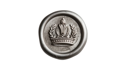 Silver Wax Seal with Crown Emblem Isolated on White Background