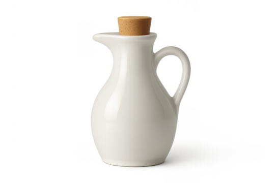 Glass cruet filled, golden olive oil and cork stopper bottle, isolated on white or transparent background, AI