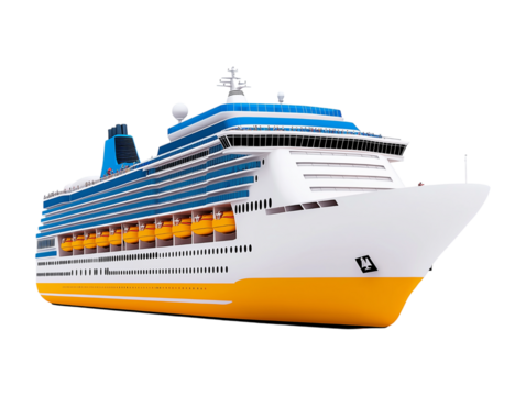 A large cruise ship isolated on transparent background, offering a luxurious vacation and a memorable journey across the ocean for passengers