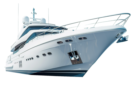 Luxury yacht isolated on a transparent background, detailed design.