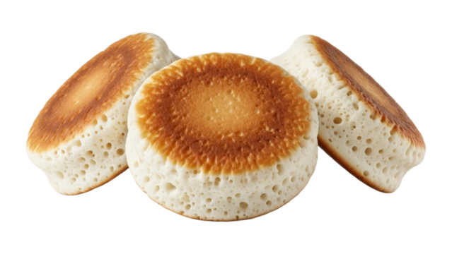 Traditional crumpets isolated on a transparent background