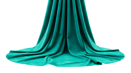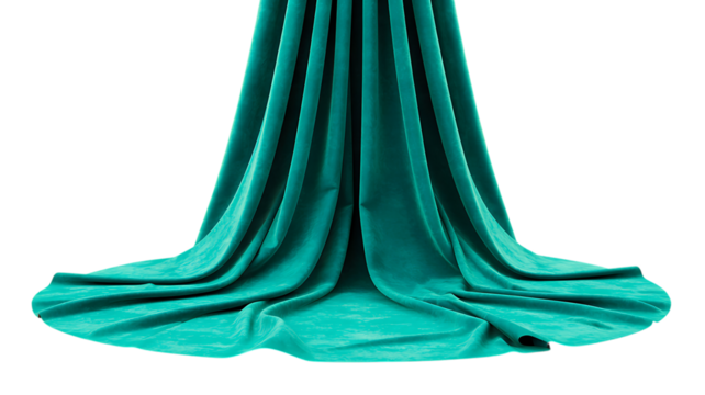 Teal Velvet Fabric Falling in Pleats textile turquoise isolated on a transparent background