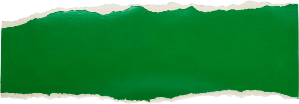 Single piece of isolated ripped blank vibrant green paper with rough edges and copy space for text on transparent background, design element