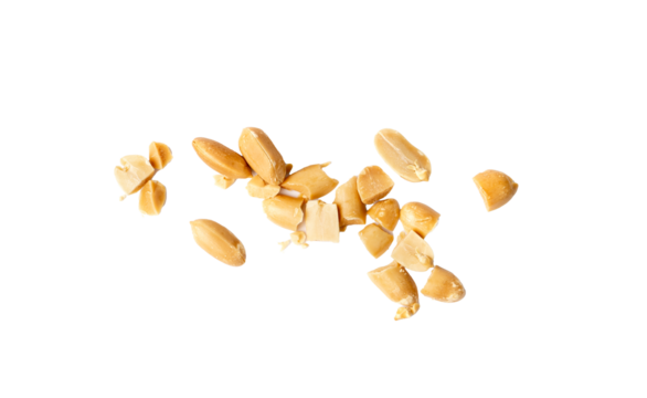 Crumbled Peanuts Isolated, Broken Roasted Arachis Nuts, Heap of Pea Nut Crumbs, Whole Groundnut Pieces
