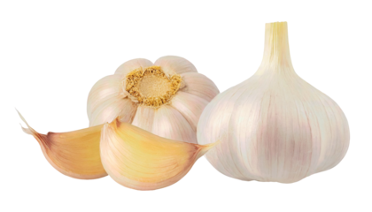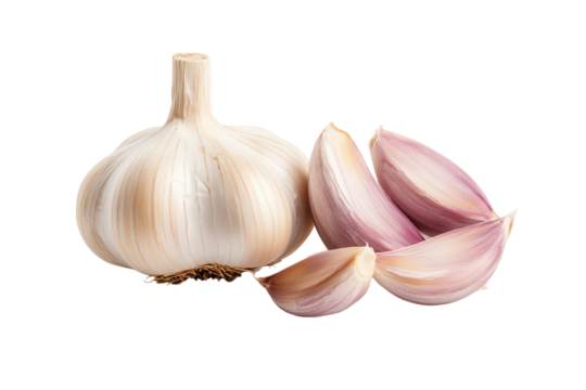 Fresh garlic with cloves separated, perfect for culinary use, garnishing, and health benefits. Isolated on transparent or white background.