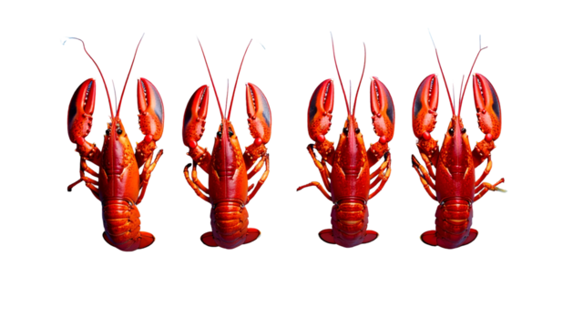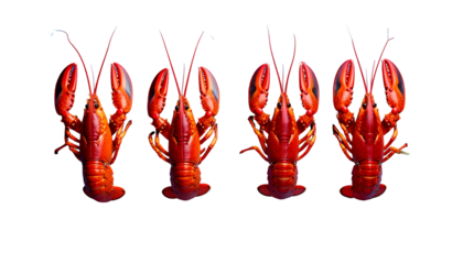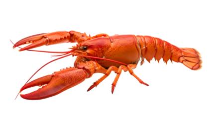 Isolated red lobster on no background, cooked, prepared for gourmet seafood cuisine