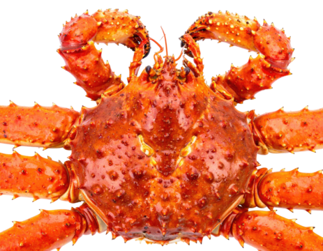 Red and white crab with spikes and claws crustacean isolated on a transparent background