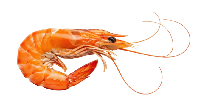 Smiling animated shrimp illustration with transparent background