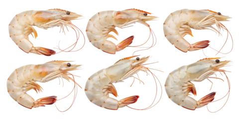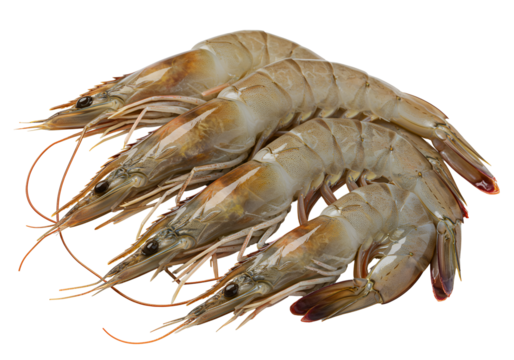 Fresh Shrimp: Fresh shrimp arranged, captured through a macro lens, these succulent crustaceans showcase their natural textures and colors. A feast for the eyes and a promise of culinary delight.
