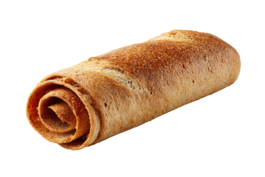 Puff pastry sausage roll isolated PNG, savory snack with flaky crust on transparent background for fast food and bakery concepts