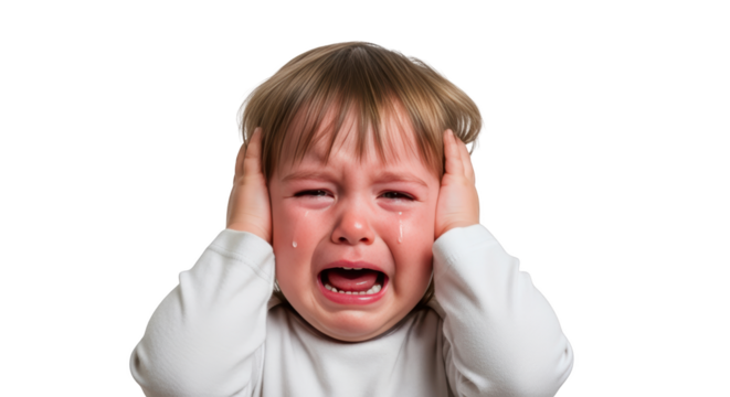Crying Toddler Covering Ears detailed illustration concept inspired by Crying Toddler Covering Ears emphasizing