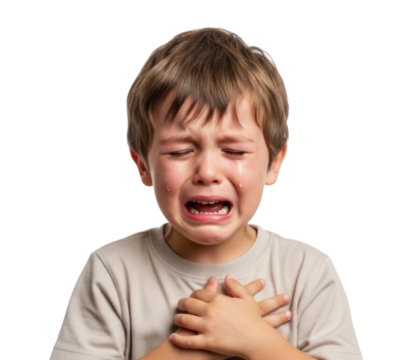 Crying Boy with Hands on Chest Isolated on Transparent PNG Background