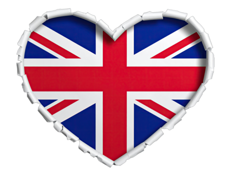 A heart shape with the Union Jack design, created using a ripped paper effect