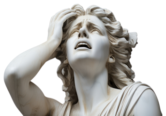 Portrait of sad woman crying, feeling unhappy. Beautiful lady shedding tears, holding her head. Hand drawn black Vector illustration. Bad mood, emotions, negative feelings concept