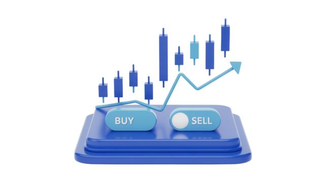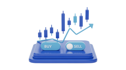 Dynamic trading concept with upward trending stock chart and buy sell buttons symbolizing financial market growth and investment decisions