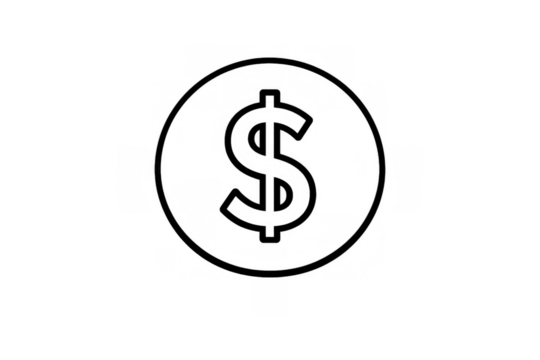 Dollar sign inside a circle, symbolizing money, payment, and wealth. Black outline on a transparent background
