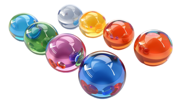 Transparent canvas with playful girl balancing on pink-blue striped ball