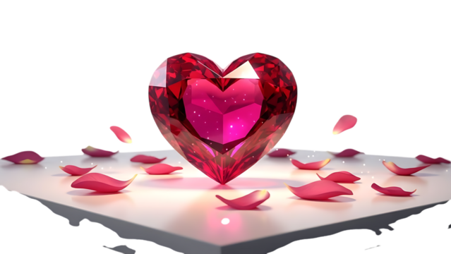 Heart shaped ruby gemstone isolated PNG, faceted red crystal for jewelry design and romantic themes on transparent background
