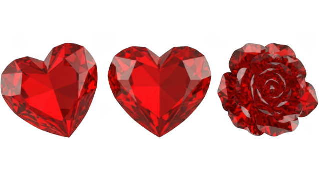 Red heart shaped ruby gemstone isolated, faceted crystal for jewelry design and romantic themes PNG