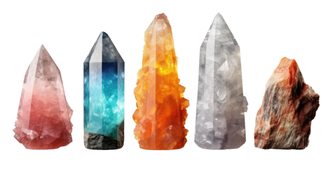Photo of multicolored crystals chakre arranged in a beautiful pattern, transparent background png