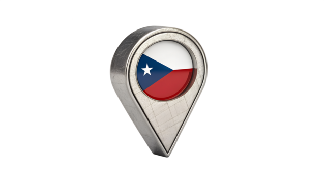 A metallic location pin displaying the flag of the czech republic, isolated on a transparent background