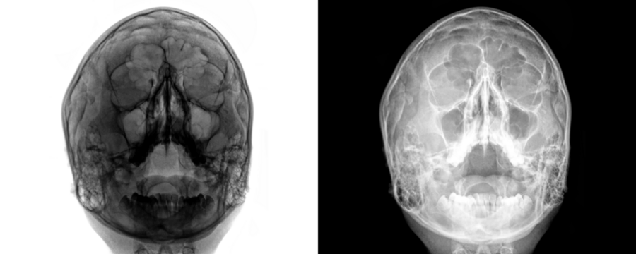 PNS PA View X-Ray Showing Frontal Sinuses and Nasal Structures for Diagnostic Evaluation Isolated on a Transparent or White Background