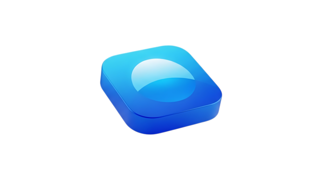 Glowing blue cube with a white crescent shape isolated on transparent background