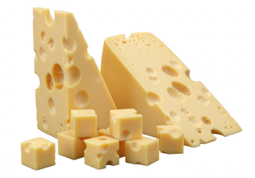 Isolated Cheese Cubes with Rosemary and Olives on Transparent Background