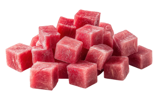 Freshly cut tuna cubes ready for sashimi preparation or sushi making