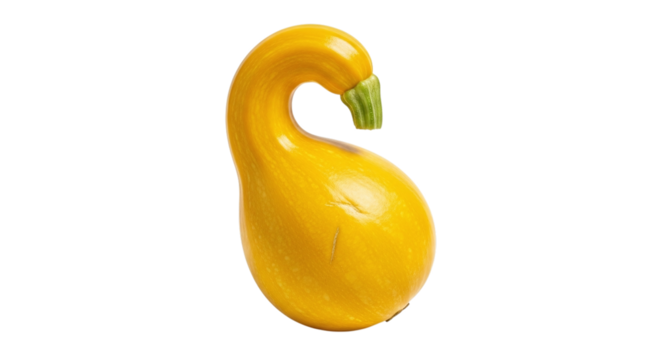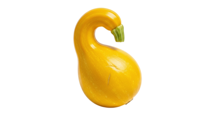 A vibrant yellow crookedneck squash, a fresh and healthy vegetable, stands upright, isolated on transparent background