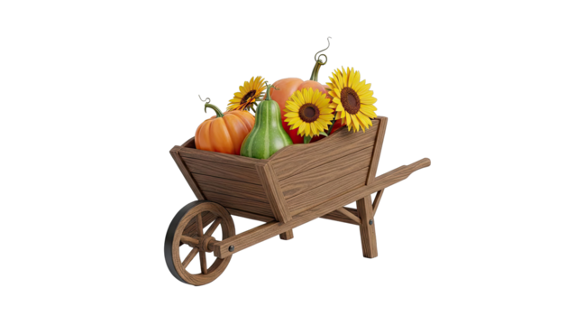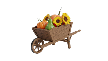 Wooden Wheelbarrow Filled with Autumn Harvest