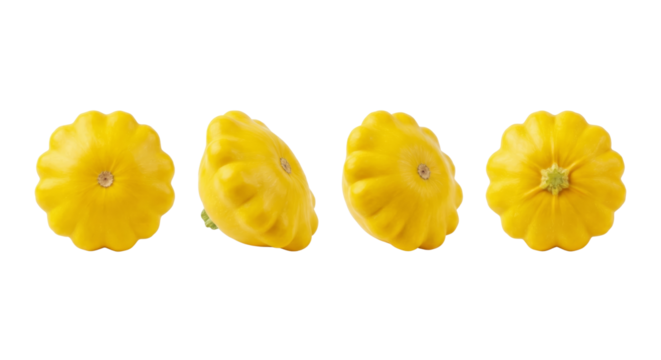 Four Yellow Pattypan Squash Vegetables Isolated on White Background