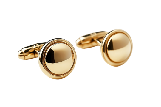 Golden cufflinks with floral design on transparent background