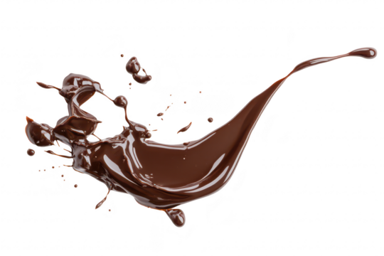 A dynamic splash of rich. dark chocolate against a clean white background. capturing the essence of indulgence and culinary creativity. perfect for dessert recipes or food-related content