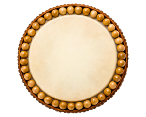 Round pink plate with gold border, isolated on transparent background, perfect for showcasing culinary creations or design projects
