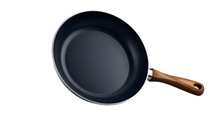 Modern Frying Pan with Nonstick Surface and Wooden Handle for Culinary Excellence on Black Background