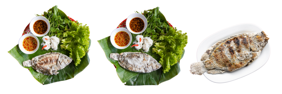 Grilled Fish Culinary Delight: A trio of meticulously presented grilled fish dishes, showcasing succulent culinary mastery with vibrant garnishes, creating a visual feast for the eyes and appetite.