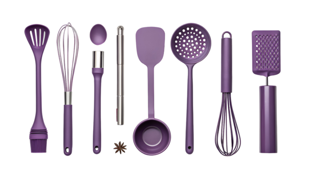 Collection of kitchen utensils and cooking tools in a mug, isolated on transparent background