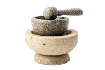 Artisan-crafted stone mortar and pestle set, showcasing timeless culinary traditions and elegance isolated on transparent background