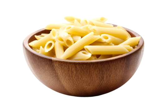 penne pasta in a wooden bowl isolated on white background Rotini pasta in a wooden bowl isolated on white background Italian cuisine Fusili pasta in a
