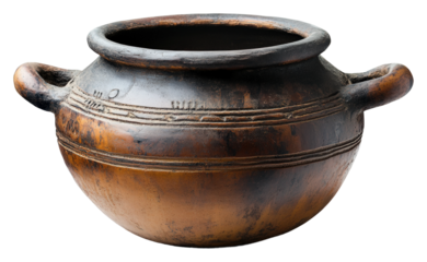 Ancient ceramic pot display museum exhibit cultural artifact indoor isolated on transparent background