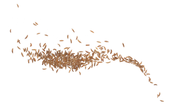 Brown cumin seeds flying, isolated aromatic spice grains with rich earthy texture and natural seasoning particles creating a dynamic herb explosion for food design and gourmet decoration
