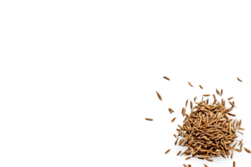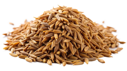 Pile of aromatic cumin seeds, dry and ready for cooking or spice grinding on transparent background