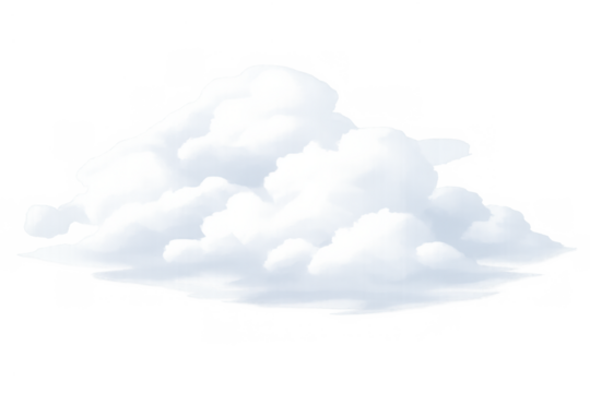 Large fluffy cumulus cloud formation isolated on transparent background. Soft white clouds with blue shadows and natural detail. Realistic sky element perfect for weather, nature, and atmospheric.