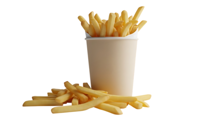 French Fries in a Paper Brown Cup, Isolated on Transparent Background