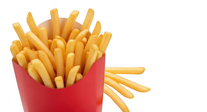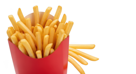 Ai generated image of a serving of french fries in a red container isolated on white isolated on transparent background