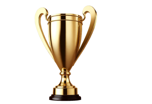 Winner golden trophy cup on transparent background. Triumph champions, celebration sports winner awards.
